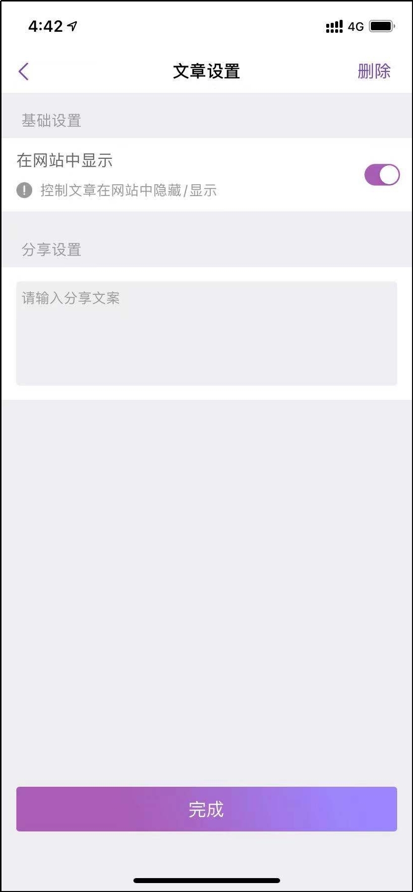 接着就能够对内容停止修正了,不过目前官微中心App仅支持修正物料的分享文案、显现状态或直接删除内容,想要修正详细内容还是引荐直接在PC端官微中心修正。