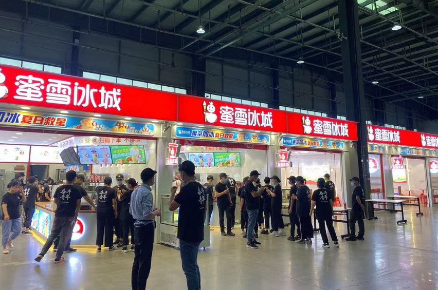 蜜雪商学现在占地约1万平方米,建设有食堂、宿舍、实操门店等,另外在2017年还建设了线上商学院,实行线上线下双平台教学。未来有可能会对连锁行业开放培训。