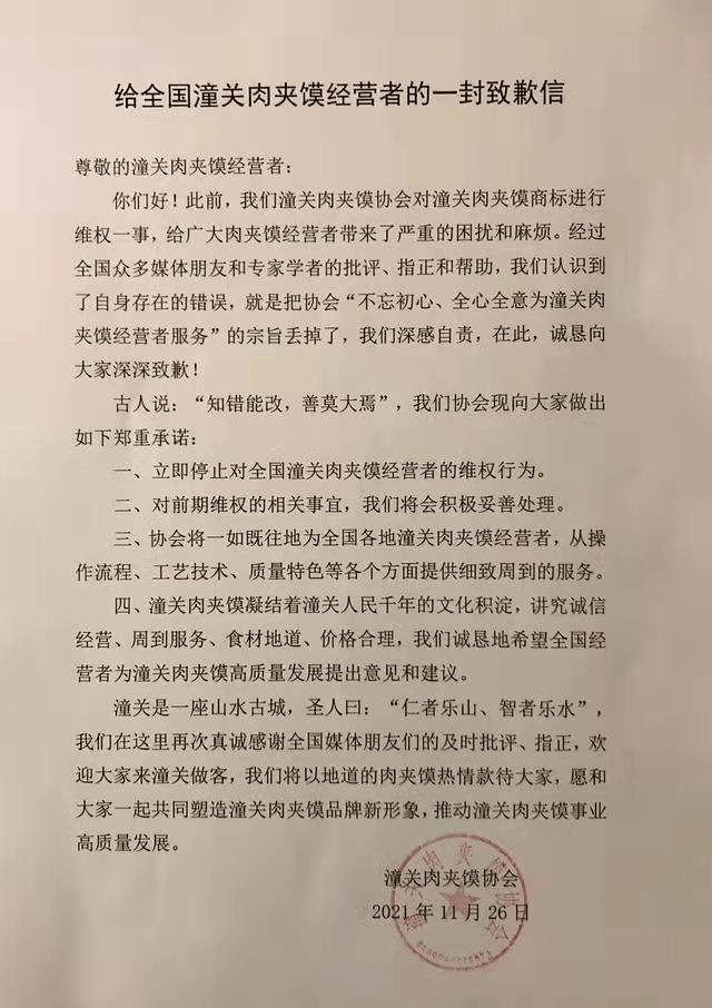 刚刚,国家知识产权局关于“逍遥镇”“潼关肉夹馍”商标纠纷答记者问。国家知识产权局指出,从法律上,“逍遥镇”作为普通商标,其注册人并不能据此收取所谓的“会费”。“潼关肉夹馍”是作为集体商标注册的地理标志,其注册人无权向潼关特定区域外的商户许可使用该地理标志集体商标并收取加盟费。同时,也无权禁止潼关特定区域内的商家正当使用该地理标志集体商标中的地名。