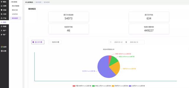 新版官微对媒体数据多维度进行收集,并可视化呈现,客户可通过一个页面查看多平台的媒体数据!