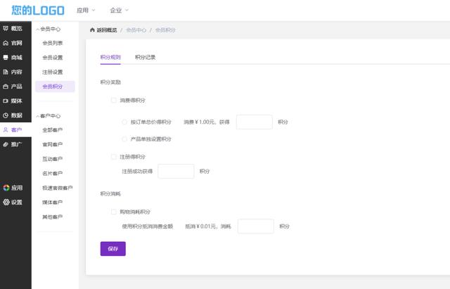 新版官微在会员管理方面处理基本的会员信息管理之外,还增加了会员积分管理体系,有利于客户对于会员的分类跟进。