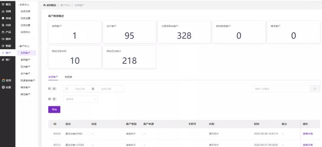 客户数据概述清晰展现了客户来源,客户类别,客户互动等数据内容。
